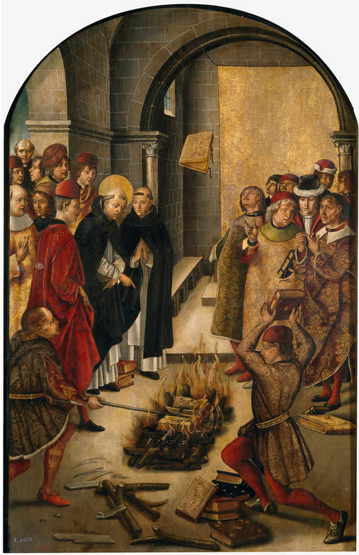 —Así es, desde la tabla Santo Domingo y los albigenses pintada por Pedro Berruguete, que se puede admirar en el Museo del Prado hasta las fotografías de las quemas nazis hay una terrible tradición histórica.