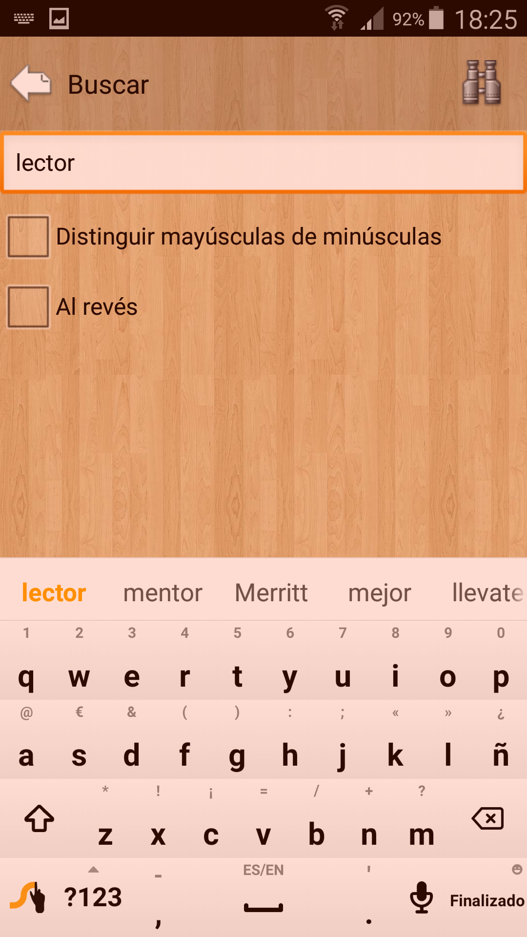 Ahora iniciemos las búsquedas, tecleando la palabra lector y pulsando en los binoculares, de manera que encuentre tanto el singular como el plural del término, lector o lectores.