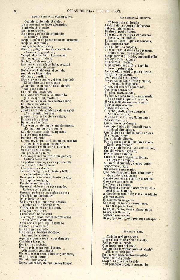 «Noche serena», tal y como se recoge en Obras de Fray Luis de León, 1855. Fuente: BVMC.