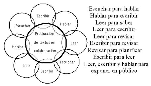Habilidades lingüísticas integradas en la escritura en colaboración.