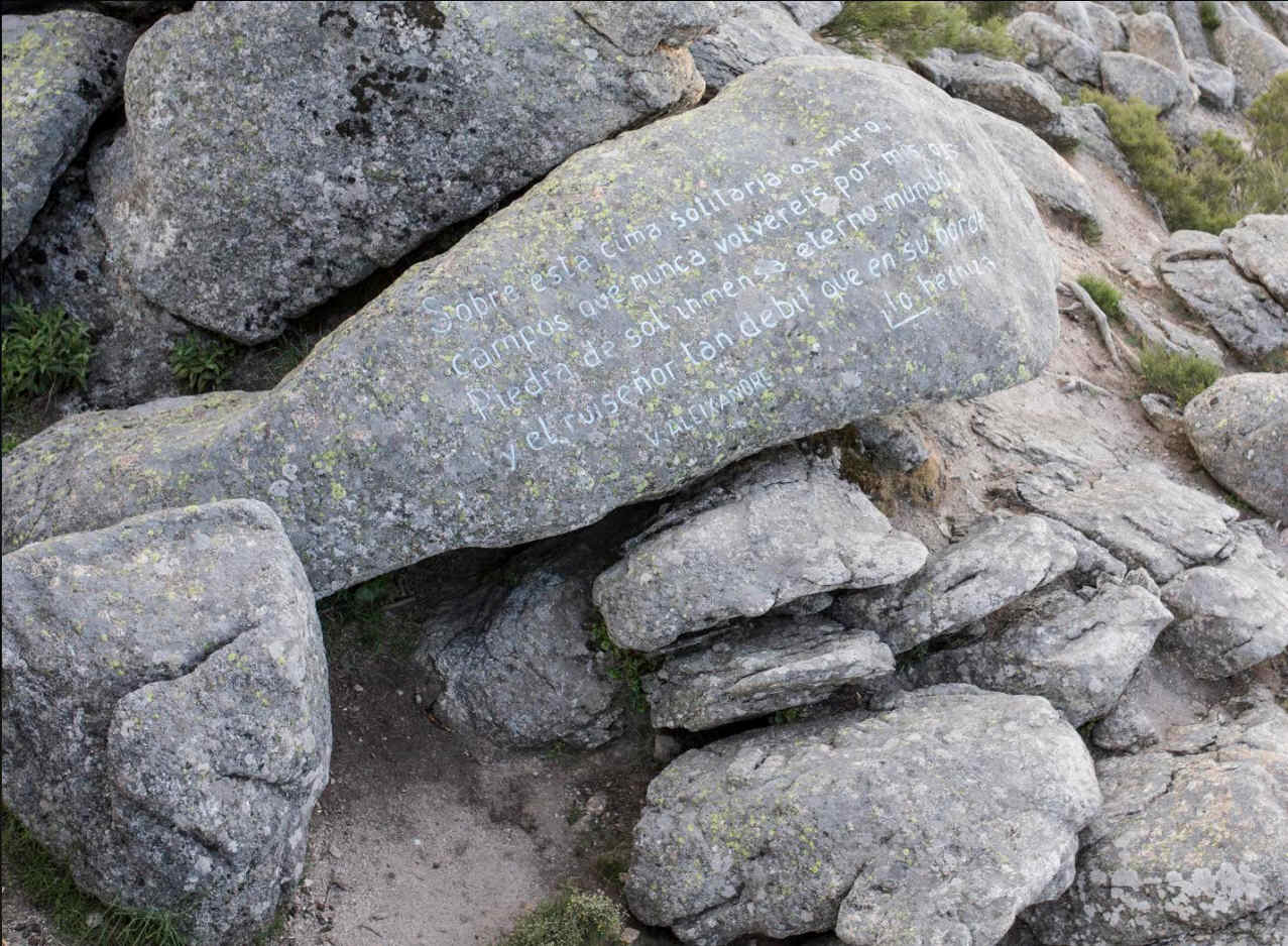 Y por la senda que nos llevará al Mirador o Posada de Luis Rosales, hallaremos en las rocas versos de Antonio Machado a Giner de los Ríos:
