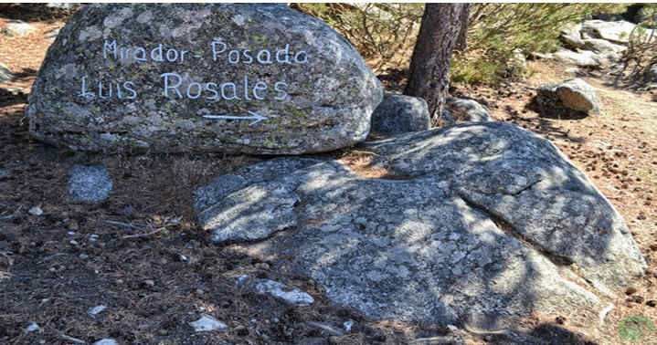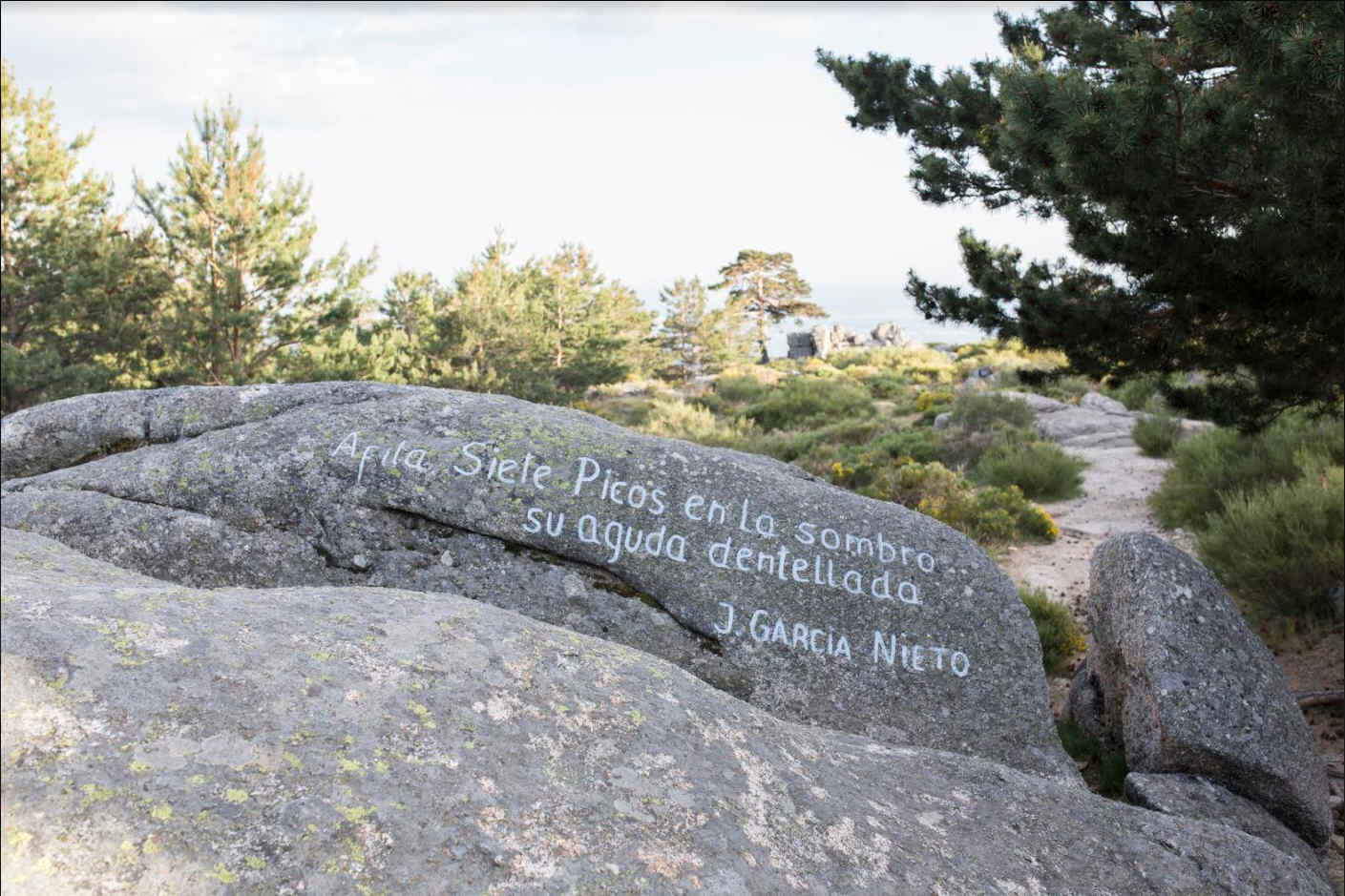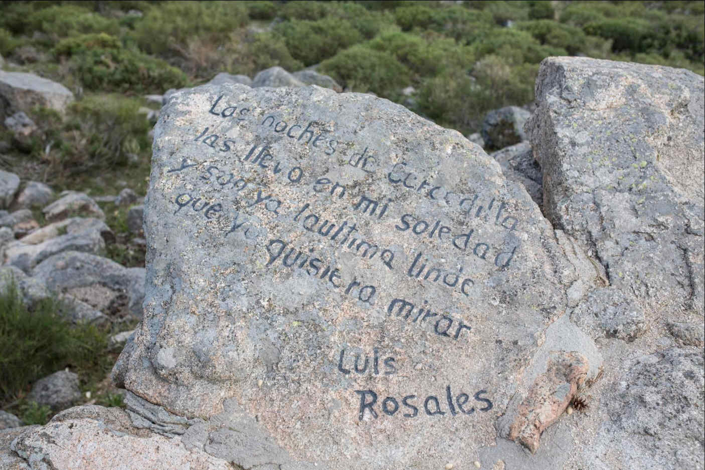 El itinerario poético llega al Mirador o Posada de Luis Rosales (1910-1992), con espléndida vista de Cercedilla, Los Molinos y el valle. En el roquero, tres memoriales del poeta granadino: sobre la roca viva una sentida cuarteta: