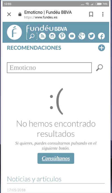 ─Ja, ja, pues que usa un emoticono, y bien hermoso, el de estar apenado de dos puntos y paréntesis :(, porque no ha encontrado resultados.