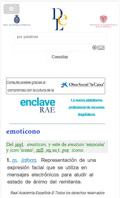─Pues curiosamente, el buscador ofrece el resultado del Diccionario para emoticono, y al abrirlo ofrece su definición, pero no la de emoji, ni alude a él.
