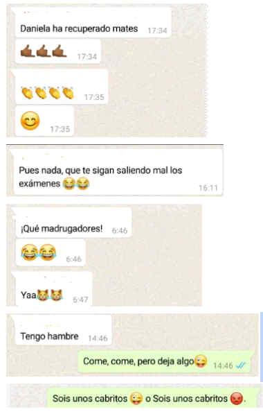 ──Nos interesa mucho saber algo del comportamiento real de la gente. ¿Podéis enviarme algunos emoticonos que uséis con cierta frecuencia?