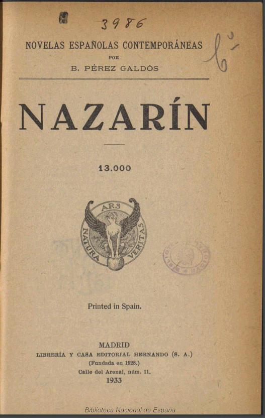 Edición de Nazarín de 1933 en la Biblioteca Digital Hispánica.