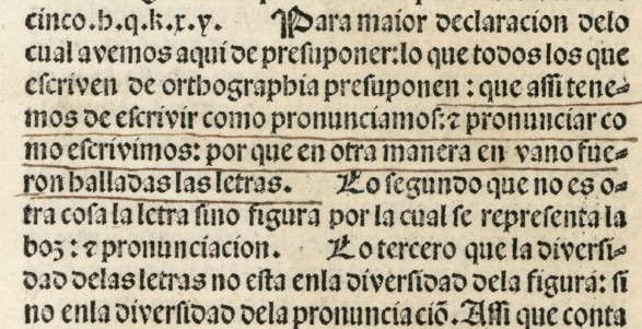 Hay que escribir como se habla, y hablar como se escribe, convencido de que las letras se deben distinguir no por su escritura, sino por su sonido, afirmaba Nebrija [...]