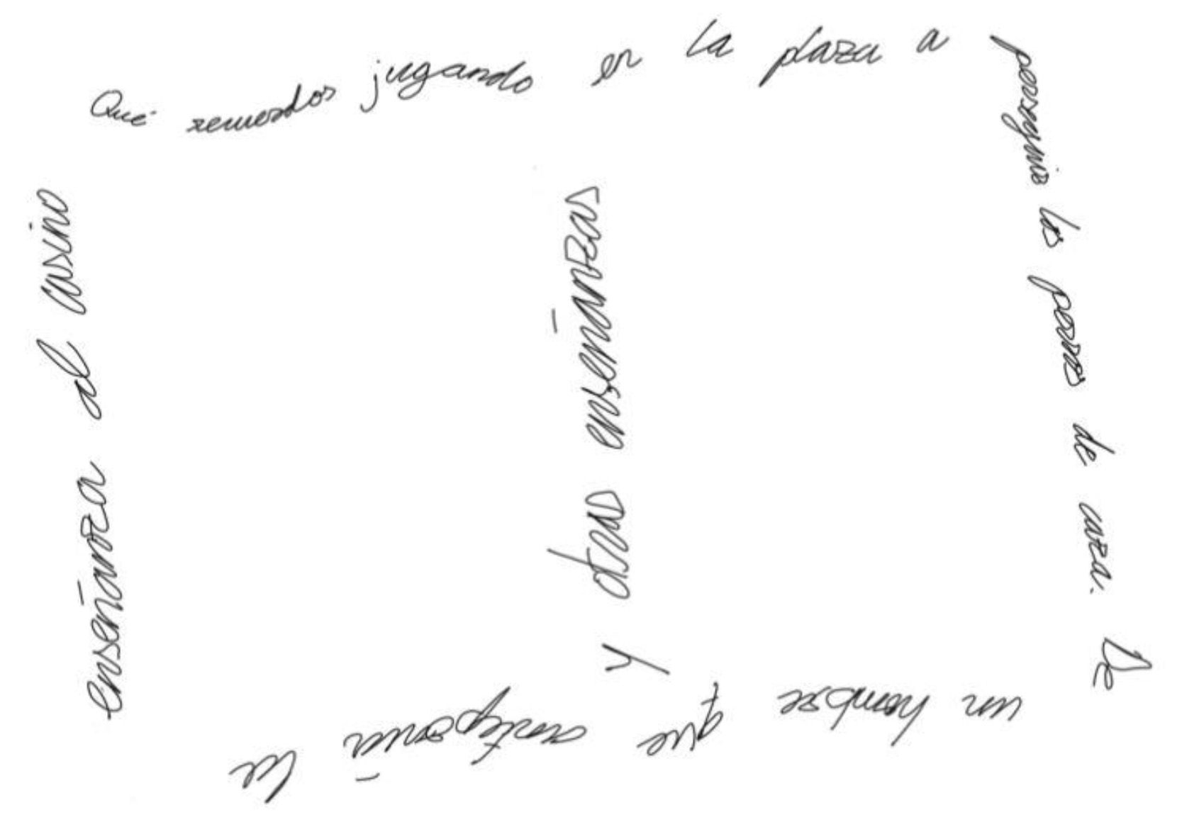 En este aporte se adjuntan los caligramas con la relación de sus autores con la esperanza de contagiar, siquiera mínimamente, la magia literaria transformadora que tuvimos ocasión de vivir en el aula. La creatividad literaria constituye un pilar fundamental en una enseñanza crítica y libérrima, frente a los modelos que promueven la permanente abyección del sujeto aprendiz, su desdibujamiento. Además, este tipo de dinámicas nos reconcilian con la Literacidad crítica, ya que conjugan lo visual, lo oral y lo escrito. Y es que la enseñanza lúdico literaria/artística de los vanguardistas se convierte en ejemplo paradigmático para la enseñanza-aprendizaje de la Literatura. Esperamos que los lectores disfruten de esta experiencia literaria multisensorial, tan atractiva, tan escandalosamente contagiosa.