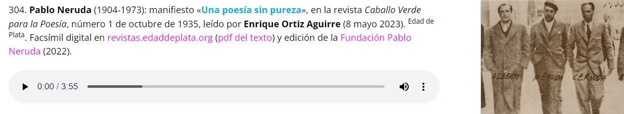 ─Pues luego, por ejemplo yo, Emilio Prados, con «Llegada (A Federico García Lorca)», perteneciente al Romancero de la guerra civil española de 1936 (Recitario 257).