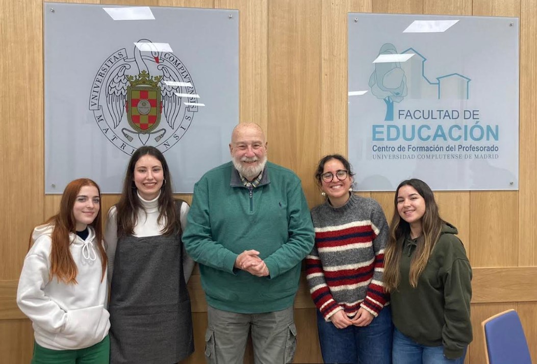Los estudiantes del MFPS Aura Alonso Agraz, Beatriz San Pedro Llorente, Gloria Espejo Fernández, Lydia Molina Seisdedos, Raquel Sánchez Mayor y Miriam Pérez Maestre mantuvieron un coloquio con el autor, que respondió con cercanía y buen humor a todas las preguntas.