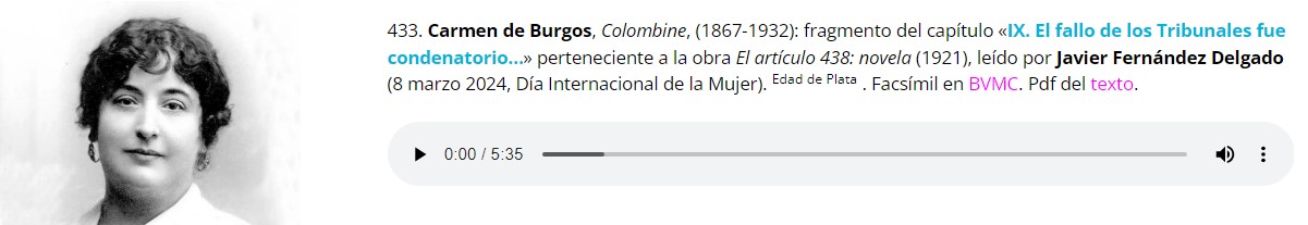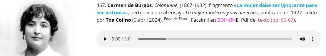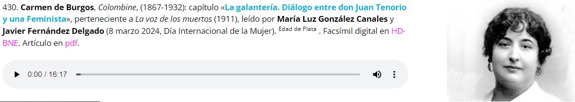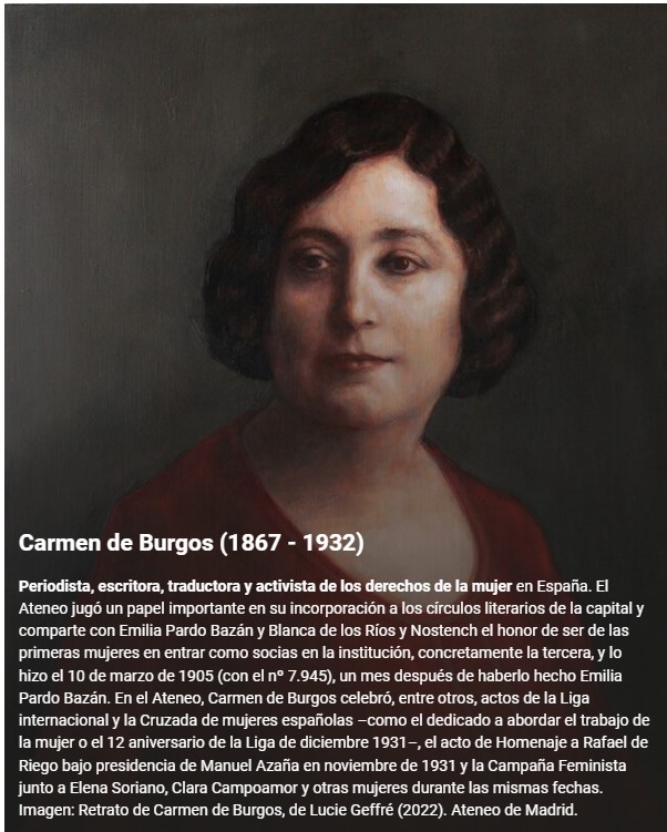 Retrato y biografía de Carmen de Burgos en la web del Ateneo de Madrid dentro de la campaña Las mujeres en su sitio.