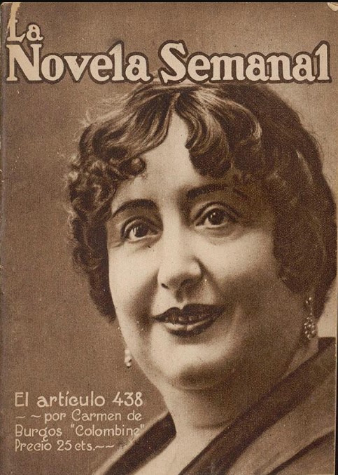 Carmen de Burgos Seguí (Rodalquilar, Almería, 1867-Madrid, 1932). Fue periodista, escritora y traductora, conocida en su tiempo como 'Colombine', aunque también firmó sus obras con otros seudónimos como «Gabriel Luna», «Perico el de los Palotes» o «Raquel». Se convirtió en una de las figuras más relevantes de la cultura en la Edad de Plata española. Es considerada la primera periodista profesional, por su condición de redactora del periódico Diario Universal y primera corresponsal de guerra. Fue también, una de las principales activistas de su tiempo en la lucha por los derechos de la mujer española. Su dilatada carrera literaria y su trayectoria vital muestran una mujer culta de fuertes convicciones, de carácter, firme, reivindicativo e independiente y una luchadora incansable por los derechos sociales.