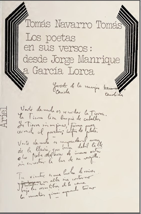 Tomás Navarro Tomás (La Roda, Albacete, 1884-Massachusetts, 1979). Fue un filólogo, escritor, investigador, bibliotecario e intelectual español. Se le considera una de las figuras más sobresalientes de la historia de la Filología española, discípulo predilecto de Ramón Menéndez Pidal, fue el fundador en España de la Fonética experimental, así como el sistematizador y maestro indiscutible del estudio de la Métrica.