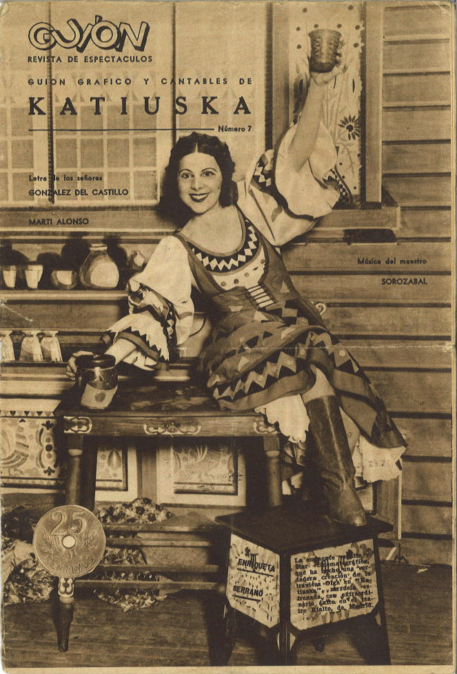 La tiple Enriqueta Serrano, en el papel de la 'traviesa' Olga, de Katiuska. A esta popularísima zarzuela se debe que llamemos 'katiuskas' a botas como las que luce la que se convirtió en esposa del maestro Sorozábal. Fuente.