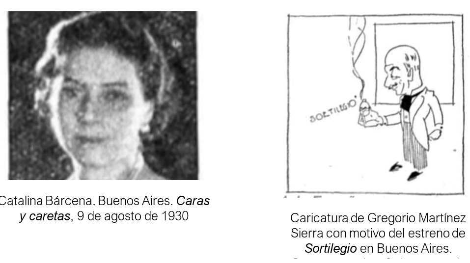 Se estrenó en Buenos Aires el 26 de julio de 1930, y se repuso repuso en 1942. En una carta a su amiga Collice Portnoff del 12 de septiembre de 1930, María, al parecer satisfecha, escribe: «Ahora hemos estrenado en Buenos Aires una obra nueva, Sortilegio, en la cual, por lo visto, gasté toda la sustancia gris que me quedaba y que afortunadamente parece haber tenido grandísimo éxito» (O’Connor 2002: 24). En efecto, la crítica bonaerense alabó la interpretación, «si no brillante, atinada», destacando el trabajo de Catalina Bárcena, Dicenta y Manuel Collado. También alabaron unánimemente «las decoraciones de Fontanals, de una exquisita magnificencia»(1930c: 148). La producción en su conjunto fue elogiada, aunque con algunas salvedades. Por una parte, la consideraron «extraña en el repertorio» de la compañía, y más tratándose de Gregorio Martínez Sierra, que siempre se había distinguido por «la delicadeza y el sello de feminidad» que había empleado en otros temas (1930b: 27). Por otro lado, el crítico de Caras y caretas observa un desequilibrio en la composición de la obra, que incluso supone haber sido escrita en dos épocas, la segunda más precipitada, puesto que, mientras en los siete primeros cuadros muestra «verdaderas notas de valor que traslucen un ponderable regodeo intelectual, cuyos resultados se manifiestan en escenas tan atractivas como la de la boite de ex hombres y la seudo nupcial entre Paulina y Augusto», lo dos últimos cuadros, «sobre todo el penúltimo, acusan una precipitación lamentable, que perjudica seriamente el equilibrio y ritmo de la obra» (1930c: 148). El penúltimo cuadro, ciertamente breve, muestra la pantomima que lleva a cabo Paulina ante Francisco, aleccionada por Beatriz, como revancha por el rechazo de Augusto.