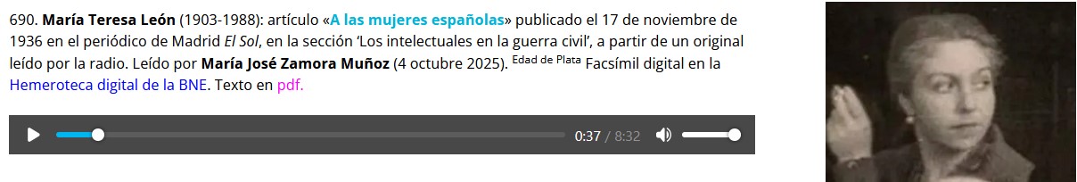 ZAMORA MUÑOZ, María José (2025). «María Teresa León, la luz del cometa». Letra 15. Revista digital de la Asociación de Profesores de Español «Francisco de Quevedo». Año XII. N.º 15. ISSN 2341-1643
