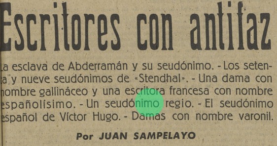 Sobre el tema de los seudónimos decía Juan Sampelayo, el 8 de marzo de 1947 en El Español: Semanario de la política y del espíritu: