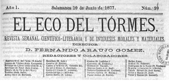 El eco del Tormes: revista semanal científico-literaria: Año I Número 21 Época - 1877 junio 10. BVPH.
