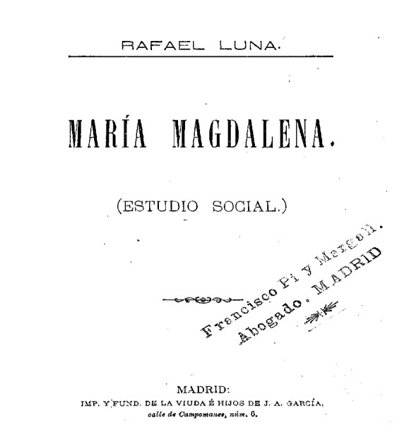 Keywords: Matilde Cherner, Rafael Luna, Mary Magdalene, Doyagüe, Mesonero Romanos, Villar y Macías, Hartzenbusch, Barbieri, Tartilán, The Celestina, Juan del Encina, Cervantes, Federal Republicanism, feminism, prostitution, The Union, charro(a), Tomás Rodríguez Pinilla, «La ilustración de la Mujer“ journal.