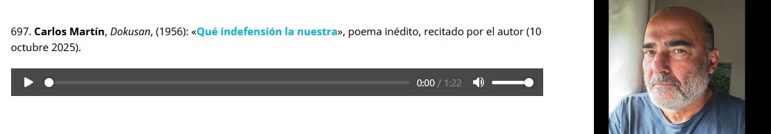 Lectura en voz alta por el autor de esta explicación de su poética, que relizó en el acto de presentación de su poemario Siempre cayendo en la Biblioteca de la Casa de Fieras del Retiro el 15 de diciembre de 2025.