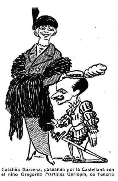 Caricatura de la pareja Catalina Bárcena y Gregorio Martínez Sierra. El Duende, 22-2-1914 pág. 7.