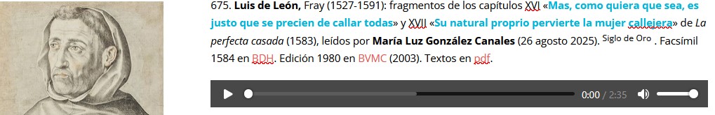 Entre la galería de ejemplos morales que presenta fray Luis, escogemos en esta grabación la defensa de las mujeres calladas y discretas por parte del autor.