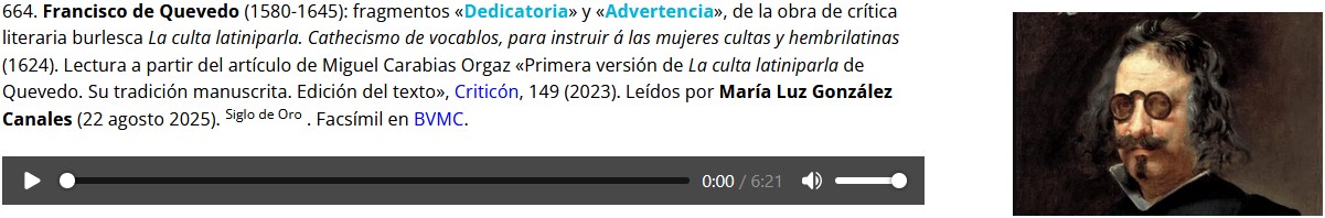 Keywords: Golden Age, Recitario APE Quevedo, Humanist women, learned young women, mystical writers, Baroque writers, audio recitation.