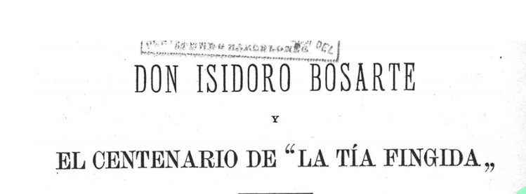 Un año antes (1904), Julián Apraiz escribe un artículo titulado «Don Isidoro Bosarte y el centenario de ‘La Tía Fingida’». En este artículo el autor comenta un concurso sobre las Novelas ejemplares, cuyo premio ganó Matilde Cherner, a la que descalifica. El artículo apareció en el mensual La España Moderna del mes de julio.
