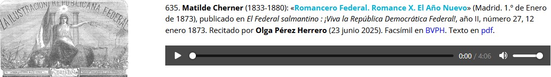 O este romance «El Año Nuevo», perteneciente a la serie Romancero Federal, aparecido también en El federal salmantino el 12 de enero de 1873, cuyo audio tenemos aquí: