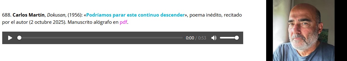Lectura en voz alta por el autor de esta explicación de su poética, que relizó en el acto de presentación de su poemario Siempre cayendo en la Biblioteca de la Casa de Fieras del Retiro el 15 de diciembre de 2025.